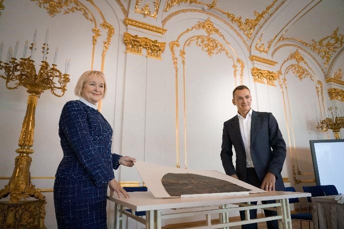 ГЕРОФАРМ приобрел из частной коллекции и передал в дар музею-заповеднику «Царское Село» фрагмент картины «Аллегория на правление Екатерины I» XVIII века. По заключению экспертов – это прижизненное изображение императрицы. На фрагменте изображена Екатерина I со скипетром и державой в руках, в горностаевой мантии и увенчанная короной. Предполагается, что автор полотна – придворный художник, поскольку экспертизой в составе пигментов живописи скипетра обнаружены золото и серебро. Обретенное произведение искусства – третий прижизненный портрет Екатерины I в коллекции музея-заповедника «Царское Село» (помимо полотен Луи Каравака и Ивана Адольского). Он дает возможность полнее рассказывать о первых годах существования царскосельской резиденции. После реставрации живописный фрагмент будет представлен в экспозиции.
