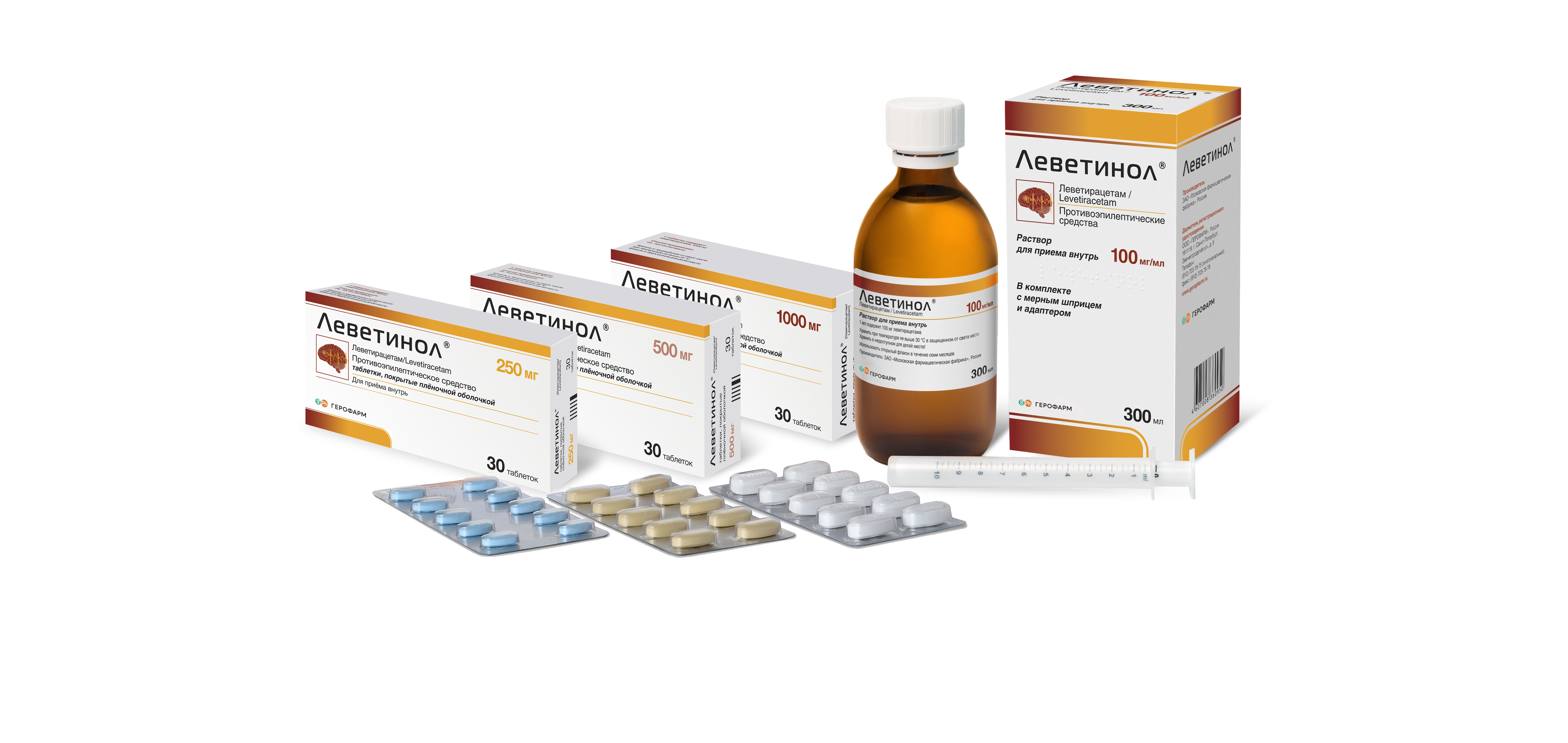 Леветинол® выпускается в широком спектре дозировок, обеспечивающих возможность удобного применения у пациентов с различной массой тела и с разными формами эпилепсии. Для удобства врачей и пациентов на таблетках имеется специальная риска, с помощью которой таблетку при необходимости легко можно разделить, а нанесенная на поверхности каждой таблетки маркировка дозировки (250, 500, 1000) позволяет пациенту точно соблюдать назначенную врачом схему лечения.